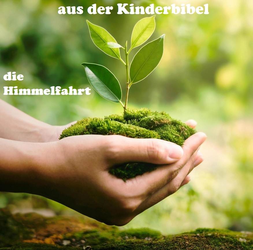 Vierzig Tage lang erschien Jesus seinen Jüngern viele Male. Sie wussten jetzt, dass Jesus lebte. Aber nun war es Zeit für ihn zu gehen. So führte Jesus seine Freunde zum Ölberg. „Bald“, sagte er, „wird Gott euch den Heiligen Geist schicken. Euch wird die Kraft gegeben, den Menschen in der Welt zu berichten, was ich getan habe und was ich für sie tun werde.“ Dann stieg Jesus in den Himmel empor und eine Wolke verschleierte die Sicht. Zwei weiß gekleidete Männer erschienen. „Jesus ist in den Himmel aufgestiegen“, sagen sie. „Eines Tages wird er auf die gleiche Weise zurückkehren, wie er gegangen ist.“