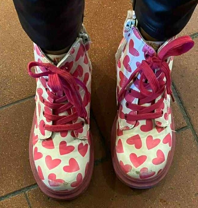 …. Heute waren wieder viele Kinder, junge Familien, …. zum Gottesdienst gekommen. SUPER! Samia hatte die Schuhe mit den roten Herzen an. „Davon hätte ich gerne ein Foto!“ habe ich gesagt. Ich wünsche allen Kindern, dass sie gute Wege gehen, dass sie viel Herz, Geborgenheit, Verständnis und Liebe erfahren. Egal welche Schuhe wir tragen, welche Wege wir gehen; Gott geht alle Wege mit.