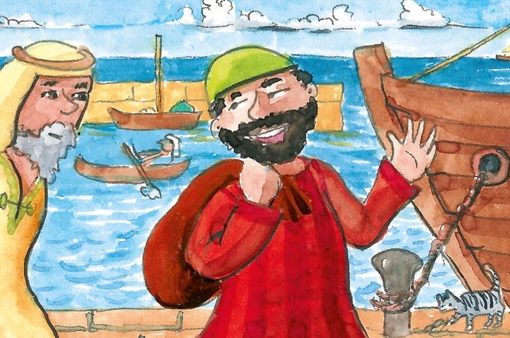 Ein Bote Gottes zu sein war oft eine gefährliche und unbeliebte Aufgabe, und nicht alle Propheten folgten Gottes Aufforderung sofort mit Begeisterung. So ein zögerlicher Prophet war Jona. Eines Tages trug Gott Jona auf in die Stadt Ninive zu gehen, die Hauptstadt von Assyrien. Die Assyrer waren Feinde von Gottes Volk. „Sag den Assyrern, dass Ninive in vierzig Tagen zerstört sein wird“, sagte Gott. „Ich habe ihre Boshaftigkeit lange genug angesehen und werde dem ein Ende bereiten. „Man wird mich für einen Trottel halten“, dachte Jona. „Gott liebt die Menschen und wird ihnen vergeben. Er wird Ninive nicht zerstören.“ So ging Jona stattdessen nach Jafo und bestieg ein Schiff, das nach Spanien auslaufen sollte. Gott war wütend auf Jona, weil er seine Weisung nicht befolgt hatte. Bald nachdem das Schiff die Segel gesetzt hatte, ließ Gott einen gewaltigen Sturm toben. Jeder hatte Angst, dass Schiff würde kentern. „Betet zu euren Göttern“, riefen die Seeleute. Währenddessen schlief Jona fest unter Deck. Als der Kapitän ihn weckte und aufforderte zu beten wie jeder andere, achtete Jona nicht darauf. Der Sturm wurde heftiger, und als das Schiff hin und her geworfen wurde, sagte Jona zu den Seeleuten: „Es ist meine Schuld, dass dieser heftige Sturm wütet. Werft mich über Bord und der Wind wird sich legen.“ Zunächst weigerte sich der Kapitän, aber als der Sturm immer stärker wurde, hatte er keine Wahl und warf Jona widerwillig über Bord. Und sogleich beruhigte sich der See.